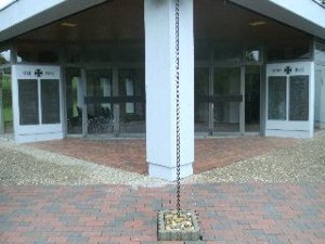 An beiden Eingangsseiten der Aussegnungshalle sind jeweils zwei Namenstafeln aus Metall angebracht. Darüber die Jahreszahlen, sowie ein Eisernes Kreuz.