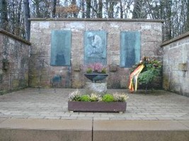 Das Kriegerdenkmal befindet sich auf dem Friedhof. In einer U-Förmig angelegten Nische sind an der hinteren Wand eine Inschriftentafel sowie zwei Namensplatten aus Metall angebracht. Auf der Inschriftentafel ist eine trauernde Frau abgebildet.