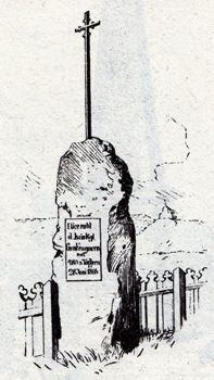 Denkmal auf dem Soldatenfriedhof an der Chaussee Slitsch (Slic) – Skalitz, bestehend in einem Eisenkreuz auf einem Steinuntersatz mit Schriftplatte.