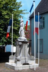 Ehrenmal nahe der Kirche Saint Sébastien. Ein vierseitiger, reich verzierter Sockel mit Eck-Voluten, trägt eine Inschrift und die Namen der Kriegsopfer. Darüber ein Standbild der Jungfrau von Orléans (Jeanne d' Arc).