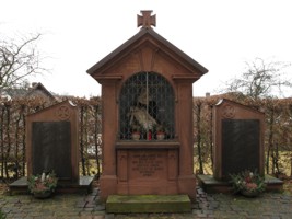 Seitenflächen des Schreins sind die Namen der Gefallenen des 1.Weltkriegs zu lesen. Rechts und links vom