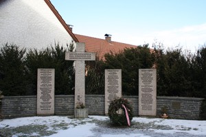 sowie ein unbekannter Soldat, gest. 1945 (auf Zusatztafel); Anmerkung: *) nicht am Denkmal vorhanden.