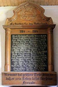 Hölzerne Wandtafel in der Kirche St. Jürgen, nördlicher Eingang, im Seitenschiff.