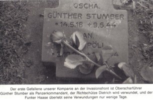 Der erste Gefallene der Kompanie an der Invasionsfront ist Oberscharführer Günther Stumber als Panzerkommandant. Der Richtschütze Dietrich wird verwundet, und der Funker Haase überlebt seine Verwundungen nur wenige Tage.