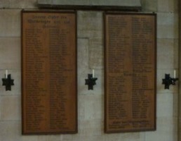 zwei Holztafeln befinden sich links neben dem Altar in der Kirche St. Maria, Tübinger Straße 36, 70180 Stuttgart