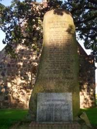 >u>Friedhof Gedenkstein: „Zum ewigen Gedenken an alle Gefallenen aus Sükow. gew. K.H., W.B., F.M., W.Sch.“