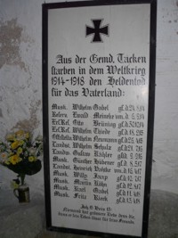 Tafel 1. Weltkrieg: Aus der Gemd. Tacken starben in dem Weltkriege 1914-1918 den Heldentod fürs
