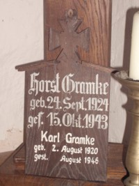 Für Gefallene des 2. Weltkriegs existiert in der Kirche nur ein Täfelchen mit 2 Namen, der Familie Gramke.