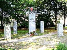 Teltow, Landkreis Potsdam-Mittelmark, BrandenburgPLZ 14513 Im Stadtzentrum sind um eine Mittelstele vier weitere aus Granit angeordnet. Das Denkmal wurde in den Jahren 1997-98 vom Bildhauer W. Statt neugestaltet nachdem es von seinem ursprünglichen Platz auf dem Markt weichen musste.