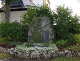 Denkmal bei der Kirche. Auf einen großen Naturstein wurde eine Metalltafel mit den Namen der Gefallenen angebracht.