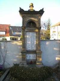 1. WK: Das Denkmal befindet sich auf dem Friedhof. Ein reich verzierter Triumphbogen aus Stein, oben ein Stahlhelm. An der Kirche befindet sich das Kriegerdenkmal von 1870/71, sowie die neuen Gedenktafeln für die Gefallenen und Vermissten des 1. und 2. Weltkrieges.