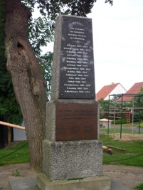 Zum Gedenken der Gefallenen des Ortes Tieckow im 1. Weltkrieg (Namen) Den Toten zur Erinnerung, den Lebenden zur Mahnung. Opfer des II. Weltkrieges 1919-1945 (Namen)