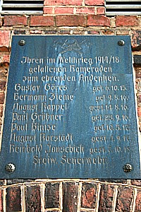 Ihren im Weltkrieg 1914/18 gefallenen Kameraden zum ehrenden Gedenken (Namen) Freiw. Feuerwehr