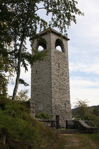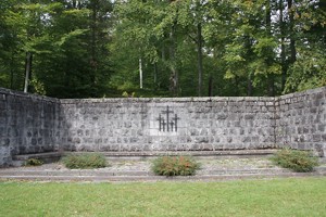 Kriegergedenkstätte oberhalb vom Ort; von einer Mauer umgebener Platz mit Wehrturm, Metallkreuze an der Mauer, die Gedenktafeln befinden sich im Turm (geschlossen); zusätzlich Hinweise zu Soldaten von privaten Gedenksteinen