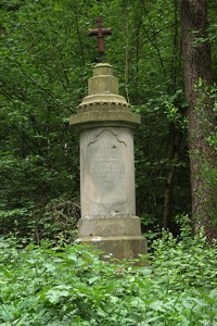 Trier-Euren (1866), Kreis Trier-Saarburg, Rheinland-PfalzPLZ 54294 im Ortsteil Euren, auf halbem Weg zwischen Trier-Euren und Trierweiler, runde Säule, oben mit Metallkreuz, Inschriften