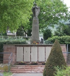 im Ortsteil Zewen, im Friedhof; quadratische Säule, oben Ritter mit Schwert und Schild, an der Mauer davor Gedenktafeln; zusätzlich Hinweise zu Soldaten von privaten Gedenksteinen (FH Zewen)