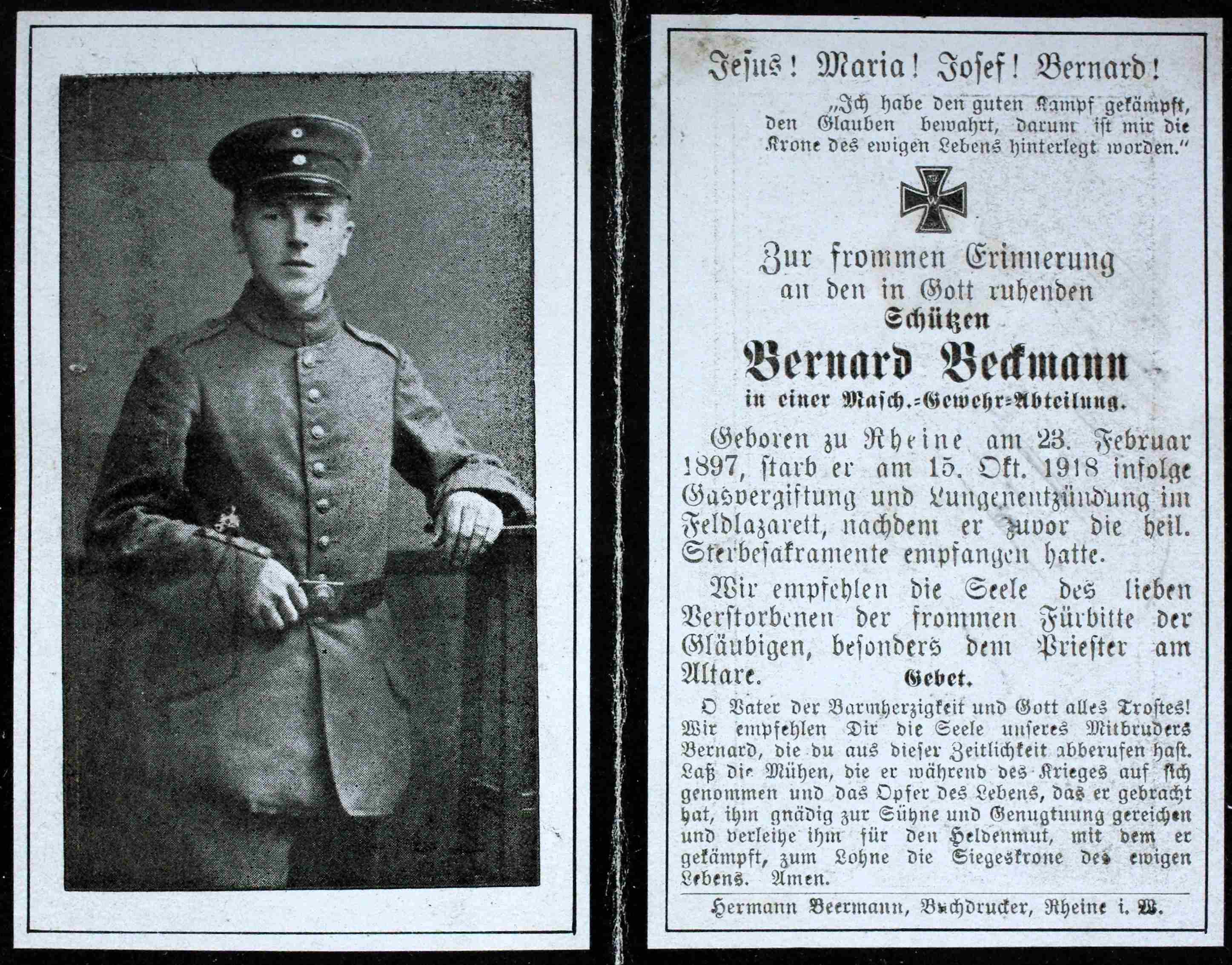 Zur frommen Erinnerung an den in Gott ruhenden Schützen Bernard BECKMANN