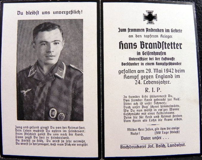 Bordfunker in einem Luftwaffengeschwader. Gefallen beim Kampf gegen England im 24. Lebensjahre