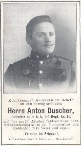 Welcher am 26. Oktober 1914 am nördlichen Kriegsschauplatz im 27. Lebensjahre den Heldentod fürs Vaterland starb