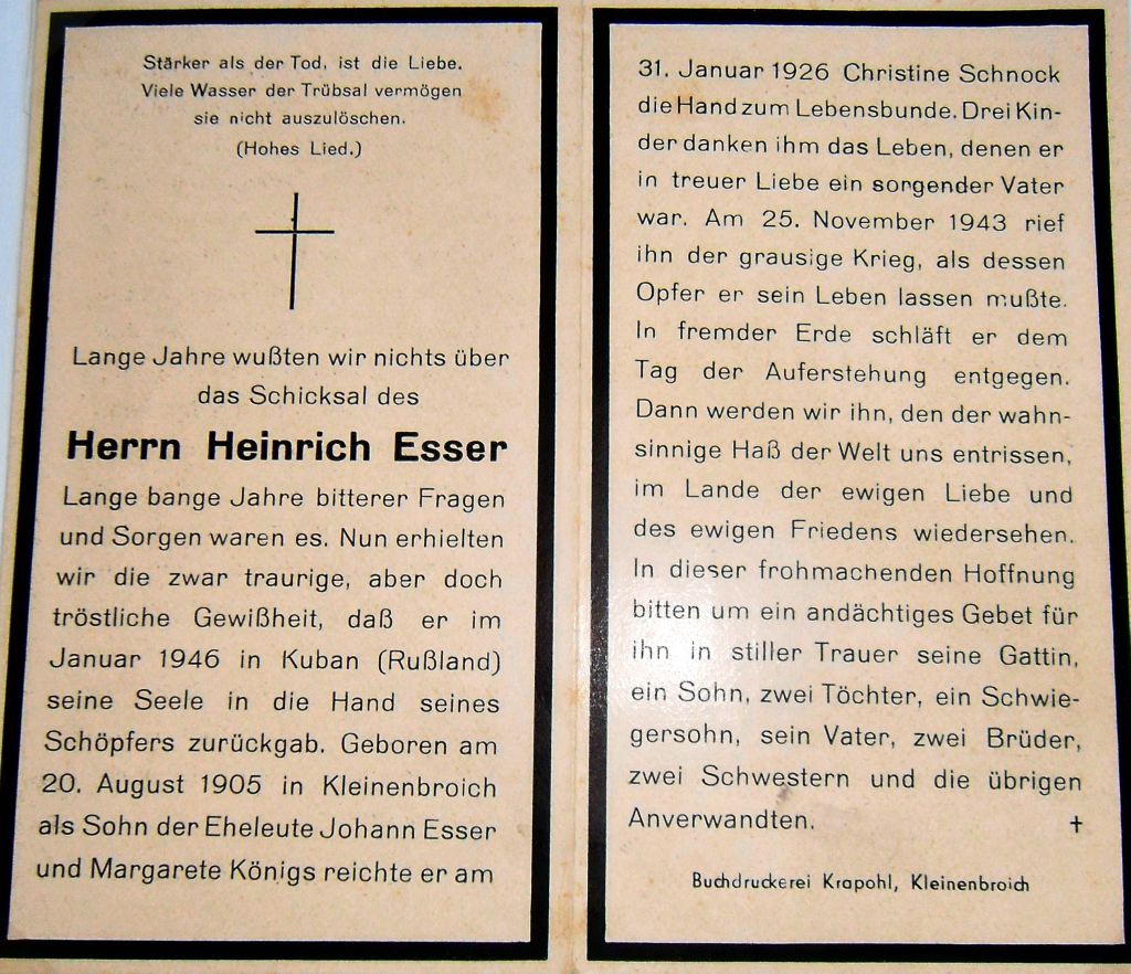 Quelle: Totenzettelsammlung der „Heimatfreunde Glehn e.V.“, Korschenbroich (www.heimatfreunde-glehn.de)