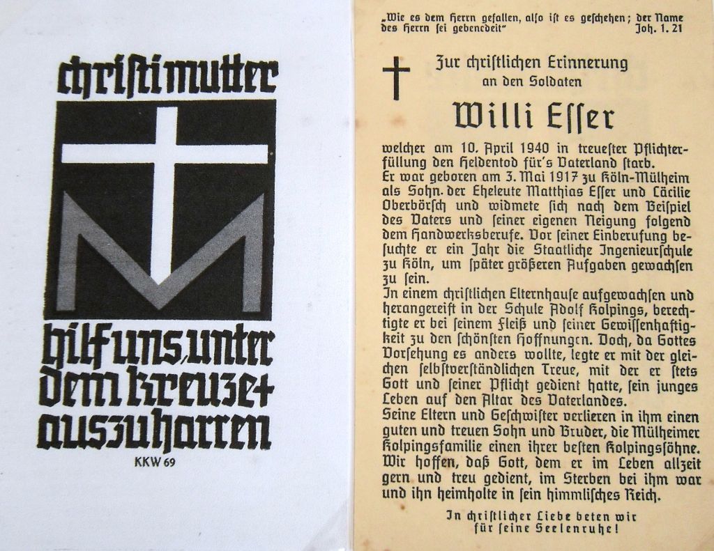 Quelle: Totenzettelsammlung der „Heimatfreunde Glehn e.V.“, Korschenbroich (www.heimatfreunde-glehn.de).Ergänzungen in blauer Schrift: www.volksbund.de/graebersuche und eigene Ermittlungen.