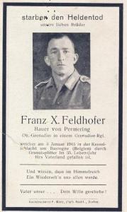 Bauer von Permering welcher in der Kesselschlacht um Bastogne durch Granatsplitter im 35.Lebensjahr fürs Vaterland gefallen ist.