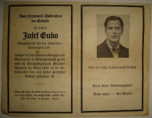 Welcher ei den schweren Kämpfen um Stalingrad in Gefangenschaft geriet und im Durchgangslager Krasno-Urmeisk im März 1943 im 32. Lebensjahre fern von seiner geliebten Heimat gestorben ist.