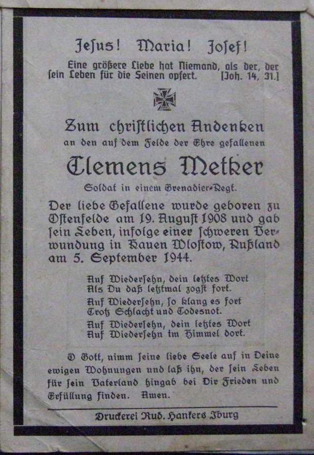 05.09.1944 Kauen Wlostow, Rußland; Chmielow, H.V.Pl. San.Kp.m.188