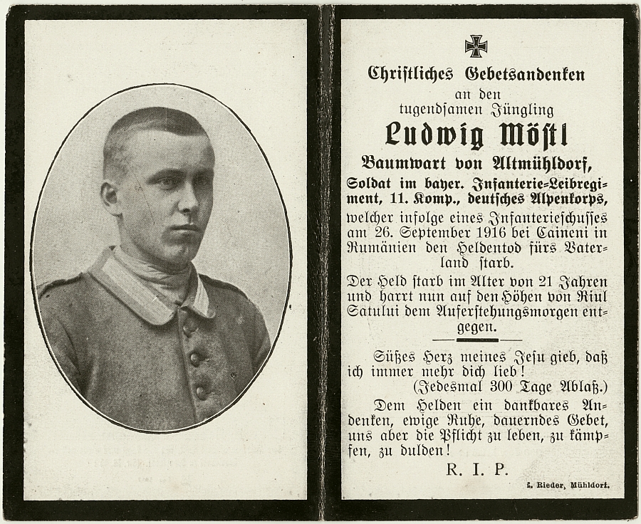 Infolge eines Infantrieschusses im Alter von 21 Jahren gefallen