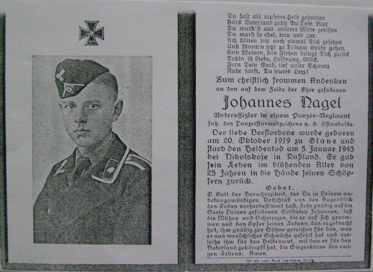 Zum christlich frommen Andenken an dem im Felde der Ehre gefallenen Johannes Nagel