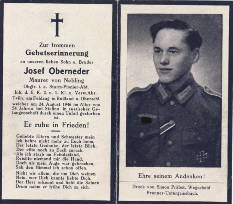 Inh. d. E.K.II und E.K.I und Verw.Abz. Im Alter von 24 Jahren in russischer Gefangenschaft durch einen Unfall gestorben