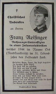 Welcher 1944 im Raume Ors (Nordfrankreich) im 31. Lebensjahre den Heldentod fand.