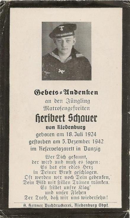 Heribert Schauer von Riedenburg. Gestorben im Reservelazarett in Danzig.