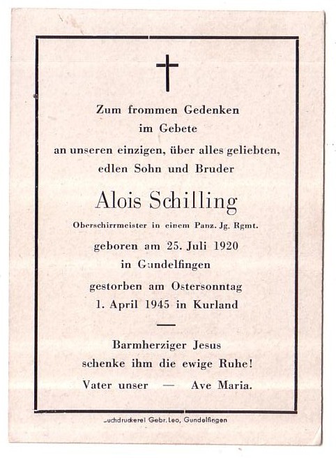 Zum frommen Gedenken im Gebete an unseren einzigen, über alles geliebten, edlen Sohn und Bruder