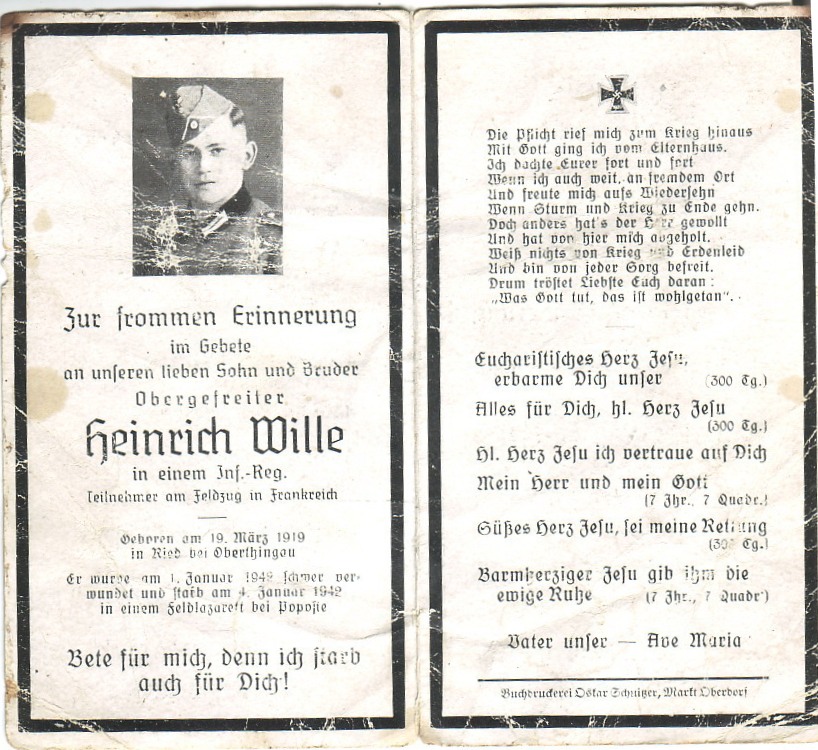 Zum frommen Erinnerung im Gebete an unseren lieben Sohn und Bruder