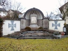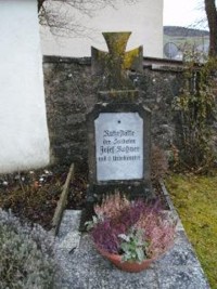 Auf dem Einzelgrab steht: Ruhestätte der Soldaten Josef Roßner und sechs unbekannte