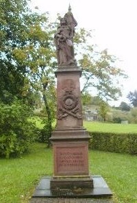 Unterhalb der ev. Kirche befinden sich zwei Kriegerdenkmäler. 1870/71: Eine verzierte Sandsteinsäule mit einer „Siegesgöttin“ die eine Fahne hält. 1914/18*1939/45. Eine viereckige Sandsteinsäule auf der sich ein knieender Soldat befindet. Links und rechts angebracht, Sandsteinplatten an denen sich als Abschluß eine weitere kleine Sandsteinsäule befindet.