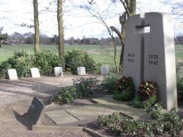 Gedenkstätte für die Kriegstoten beider Weltkriege. Die Angaben auf den 58 Steinen wurden ergänzt