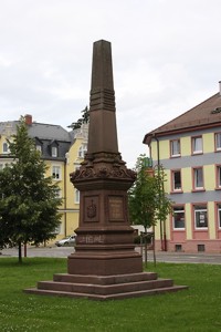 im Grüngürtel ausserhalb der Altstadt von Villingen; Nähe Bickentor, Denkmal aus rotem Sandstein, Inschriften auf drei Seiten