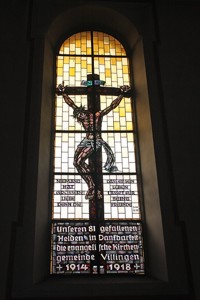 in der Altstadt von Villingen; in der Johanneskirche, Inschriften an einem Kirchenfenster