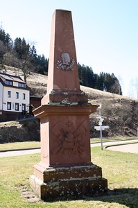 am Weg Richtung ev. Kirche; Denkmal aus rotem Sandstein