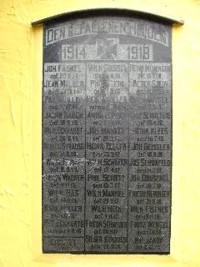 Links vom Eingang in die Kirche befindet sich das Kriegerdenkmal für den 1. Weltkrieg, eine schwarze Steintafel.