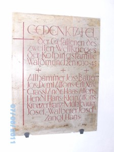 Gedenktafel der Gefallenen des zweiten Weltkrieges der Kolpingfamilie Waldmünchen 1939 – 1945