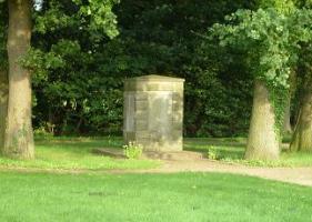 Das Kriegerdenkmal befindet sich mitten im Ort direkt an der B74. Es hat die Form einer quadratischen Säule, gemauert aus bossierten Sandsteinquadern. In den vier Seiten sind Gedächtnistafeln aus Sandstein eingelassen, mit den Inschriften und Namen der Opfer. Eine leicht konische Sandsteinplatte bildet das Kopfstück. Am 7. November 1937 wurde das Kriegerehrenmal geweiht. Anfang der sechziger Jahre wurde es erweitert, um auch an die Gefallenen und Treck-Opfer der Heimatvertriebenen zu erinnern. Im Beisein der Kyffhäuser- Kameradschaft Wallhöfen wurde am 1. Juli 1962 die neue Gedächtnistafel eingeweiht.