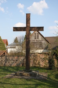 bei der Kirche; quadratische Säule, oben mit Steinplastik, „knieender Soldat“, Inschriften auf drei Seiten; hinter der Kirche; Hochkreuz aus Holz, Inschriften, (2. Weltkrieg ohne Namen); zusätzlich Hinweise zu Soldaten von privaten Gedenksteinen