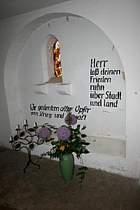 Wesenberg (St. Marien), Landkreis Mecklenburgische Seenplatte, Mecklenburg-VorpommernPLZ 17255 Im Eingangsbereich der gotischen St. Marienkirche befindet sich eine schlichte Gedenkecke.