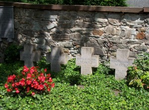 Auf dem Friedhof des Wiesbadener Stadtteils Biebrich befinden sich zwei Ehrenmale mit Gräberfeldern von Gefallenen und Zivilopfern des 1. und 2. Weltkrieges. Ein gemauertes, dreistufiges Denkmal im Stil eines antiken Tempels. Zwischen zwei Säulen stehend, eine nackte Bronzefigur mit Schwert, geschaffen von F. Gerth. An den Füßen der Skulptur liegen ein Eichen- und ein Lorbeerkranz. Rechts und links an den Seiten ist je eine beschriftete Bronzeplatte befestigt. Auf dem weitläufigen Gräberfeld vor dem Denkmal sind die abwechselnd runden und kreuzförmigen Grabsteine im Rasen verteilt. Die Inschriften sind zum größten Teil nicht mehr lesbar. Im hinteren Bereich des Friedhofs ein zweites Ehrenmal, bestehend aus einem großen, beschrifteten Holzkreuz auf einer durch drei Stufen erhöhten Fläche. Davor sind halbkreisförmig mehrere Gräberreihen von Gefallenen Soldaten aus dem 1. Weltkrieg angeordnet. Die Inschriften auf den Grabsteinen sind zum größten Teil nicht mehr lesbar. Vor der alten Friedhofskapelle befindet sich auf der linken Seite ein privates Familien-Grab mit vier Steinkreuzen für Gefallene aus dem 2. Weltkrieg.
