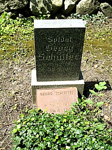 Auf einer angelehnten Tontafel ist der Familienname SCHUTTER geschrieben