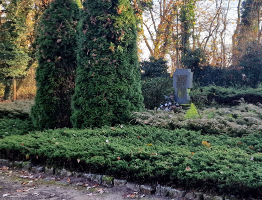 Gedenktafel und Einzelgedenken auf dem Friedhof |