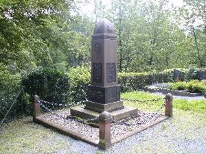 Auf dem Friedhof befindet sich das Kriegerdenkmal. Eine Sandsteinstele. Im oberen Teil ein herausgearbeiteter Stahlhelm der von einem Lorbeerkranz umringt wird. Die Inschriften- und Namenstafeln aus Marmor sind an allen vier Seiten angebracht.